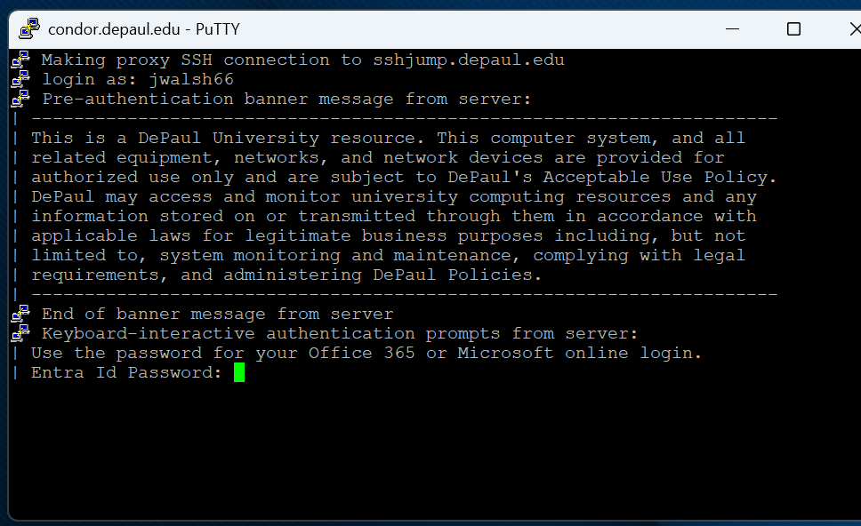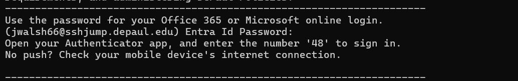 Usage is just like using command line SSH, you will need to enter your BlueKey password when prompted for the “Entra Id Password” below.